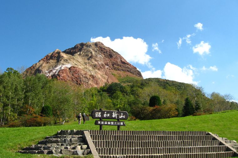 【昭和新山】昭和新山是於1943年(昭和18年)開始的火山噴發活動所形成的。原本是平坦的麥田,在短短兩年左右的時間裡反覆隆起,被列為國家特別天然紀念物。