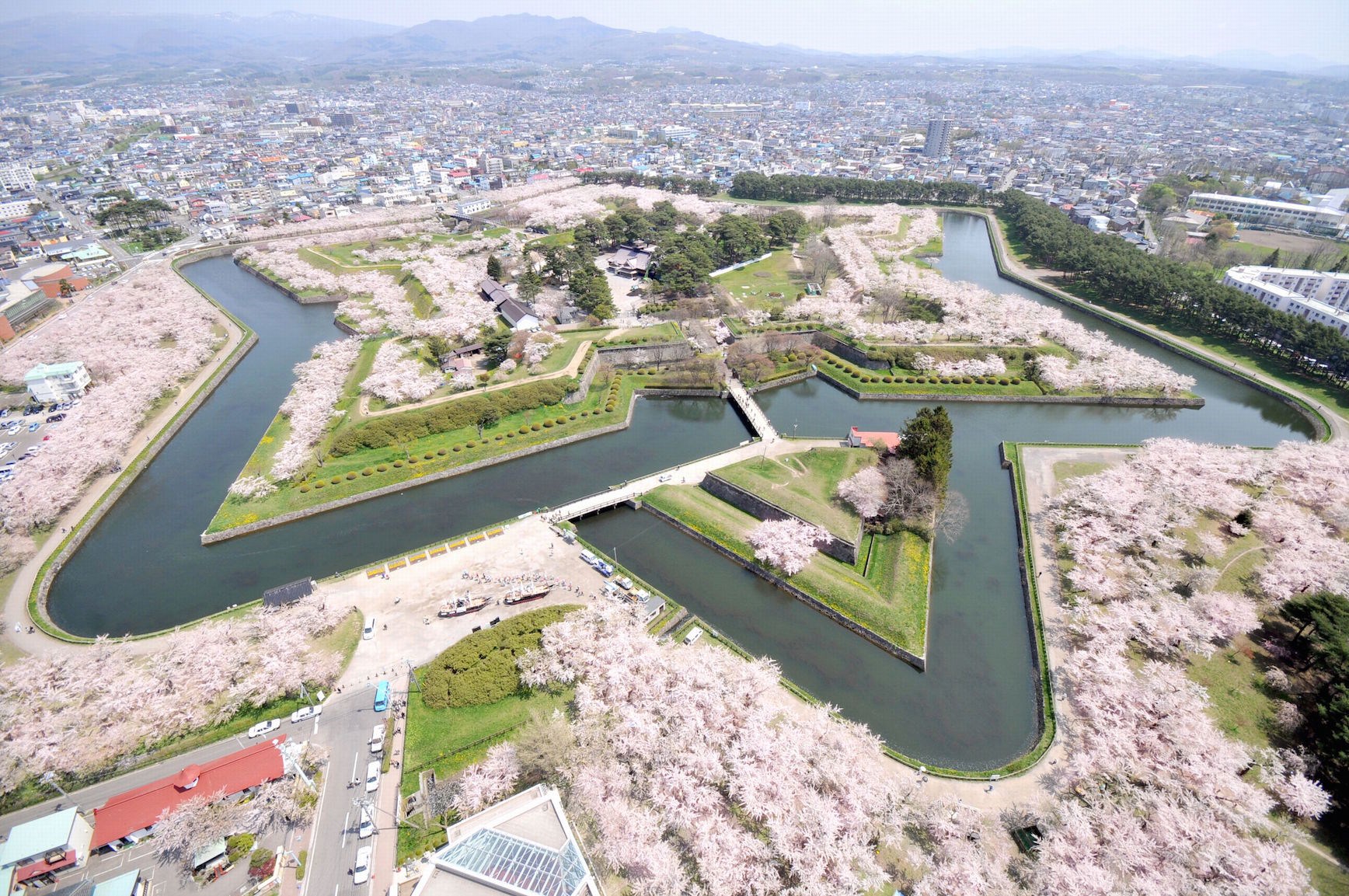 【五稜郭公園】來到函館的地標-五稜郭公園,五稜郭以造型非常獨特的星狀碉堡聞名,明治維新時期支持幕府人士,抵抗天皇軍隊最後一站(箱館戰爭1868~1869年)的發生地點,因此在日本近代史中佔有重要地位。