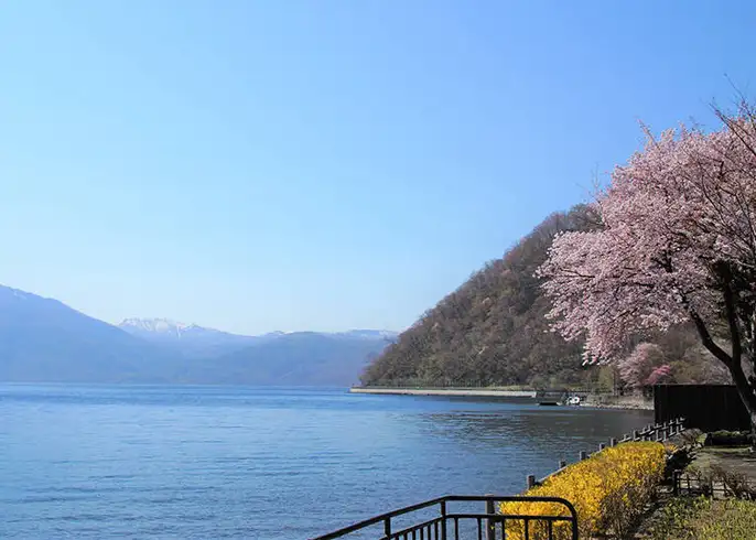 【支笏湖】支笏湖的湖周約有40km,水深360m,是日本第二深的湖泊,也是日本最北端的不凍湖。湖水的透明度約有18m深。1949年,當地被指定為支笏湖洞爺國立公園,湖在群山環抱中由於面積大,水深和山多,因此支笏湖也顯得格外澄清。