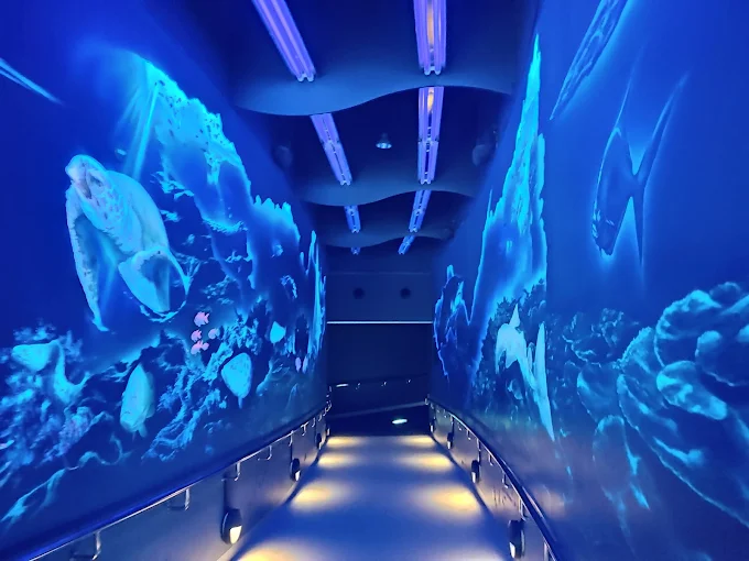 【海洋世界海之中道】位於福岡市,是九州具代表性的大型水族館。以「九州之海」為主題,展出約350種、3萬隻海洋生物,特色包括具震撼力的沙丁魚風暴、可看到海豚表演的戶外大水槽、可愛海獺與企鵝步道,適合作為親子旅遊景點,深受各年齡層喜愛。