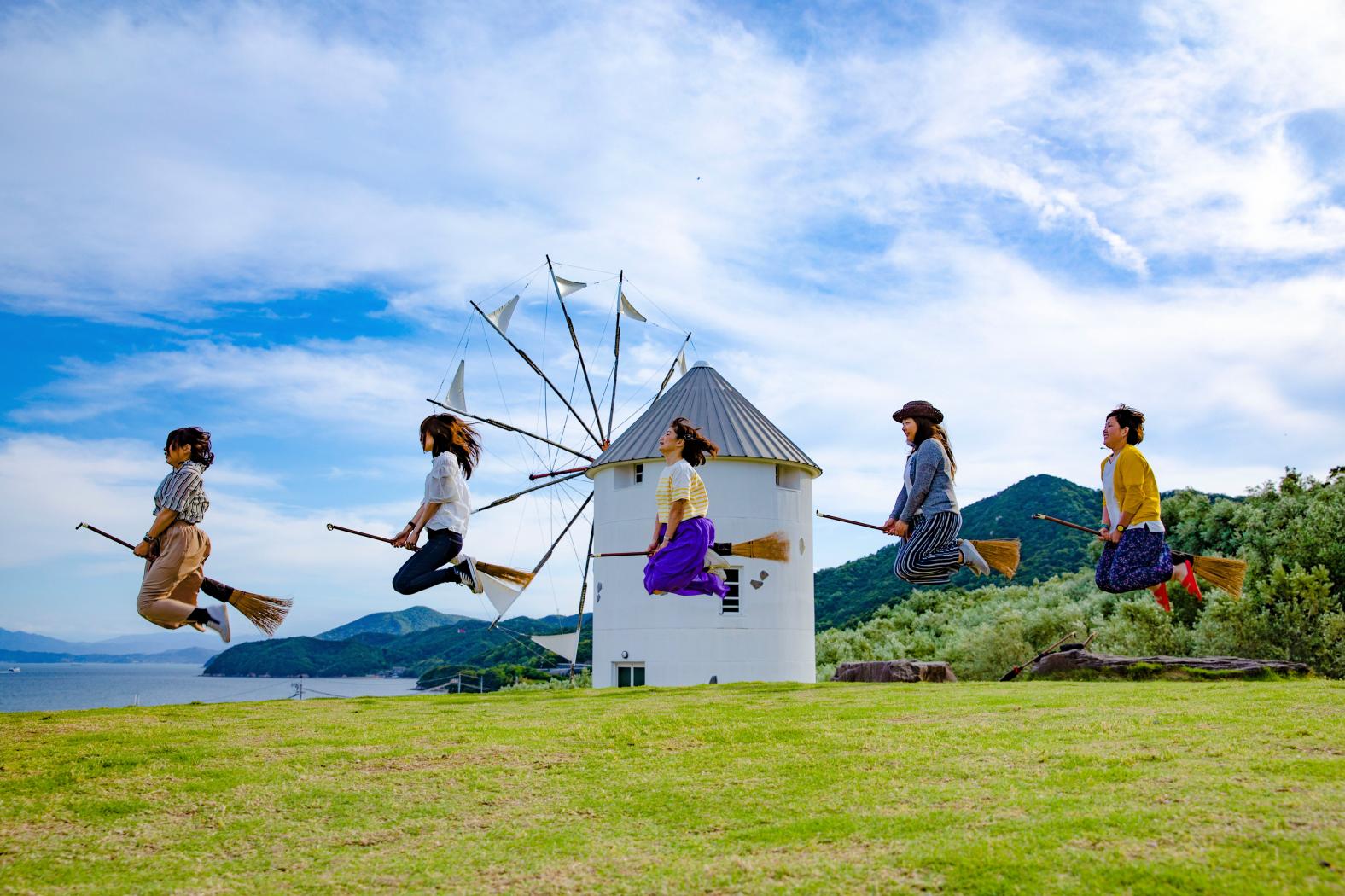 【橄欖公園】日本小豆島盛產橄欖,電影魔女宅急便就在橄欖公園取景拍攝,成為知名景點之一。輕鬆抵達公園高點俯瞰瀨戶內海,藍天白雲襯托綠色橄欖樹與香草,並借一枝掃帚在白色大風車前跳躍拍網美照,都是很棒的體驗。離開前再購買特色橄欖製成商品,紀念這美麗的地方。