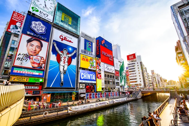 【道頓堀】是沿著道頓堀川南岸的一大繁華街區。日本人常說“吃在大阪”,可見這裏的飲食店之多,還有成片的娛樂設施,是最受大阪市民歡迎的地方。這裡有著名的螃蟹道樂,專門販賣日本各地區的螃蟹不過價錢聽說蠻貴的,街道裡還有好口碑的金龍拉麵、大排長 龍的章魚燒、大阪燒等等美食.來到大阪一定要到道頓堀吃一吃各式各樣的日本風味美食。