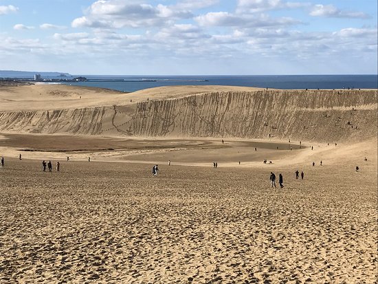 【鳥取砂丘】是位於山陰海岸國家公園,緊臨日本海,東西長16公里、南北寬2公里,是中國山地的花崗岩所風化而成的砂石,經數以千百年所累積而成的天然砂丘,漫長的海岸線和山嶽地區形成美麗的對呈現出雄偉的斜坡的鳥取砂丘如您有興趣可自費與沙漠中的駱駝照像留下紀念喔。