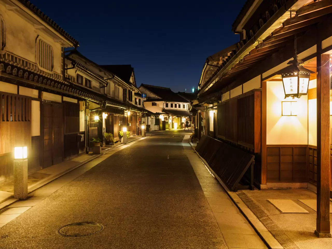 【倉敷美觀地區】保存著日本江戶時期直轄地盛極一時的繁榮情景,一街一景都有著樸實的風味。流過整個倉敷美觀地區的倉敷川是1條由石垣砌成的河道,其中有10座青石拱橋跨越兩岸。漫步在古意盎然的純樸街道中,沿途可以欣賞商人們用於貯存貨物的白色牆壁的倉庫,至今尚保存著的貨場、大八車(過去運送物資的車)通行的石板路、相當於古時的路燈的常明燈等等,反映出當時的繁榮景象。特別安排夜間造訪,避開白日人潮,讓旅客能悠然散策、沉浸在靜靜流淌的歷史氛圍中,也是不少攝影愛好者爭相捕捉的絕美時刻。