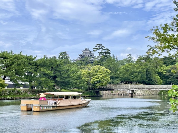 【崛川遊船】搭乘堀川遊船遊覽松江城,感受松江築城400年的歷史情懷,河岸旁的垂柳、唐菖浦花倒映在墨綠色的川面上景致優雅,岸邊的住家妝點襯托著沿岸景色。船伕經常是一邊吟唱著傳統歌謠,一邊為大家介紹沿岸風光。堀川上有16座各具特色的橋,其中有4座橋的橋墩很低,需搖下船篷才能通行,這時船伕會要求大家把身子往後躺,一趟船行下來,就這樣趴趴躺躺了好幾次,真是別有一番情趣!